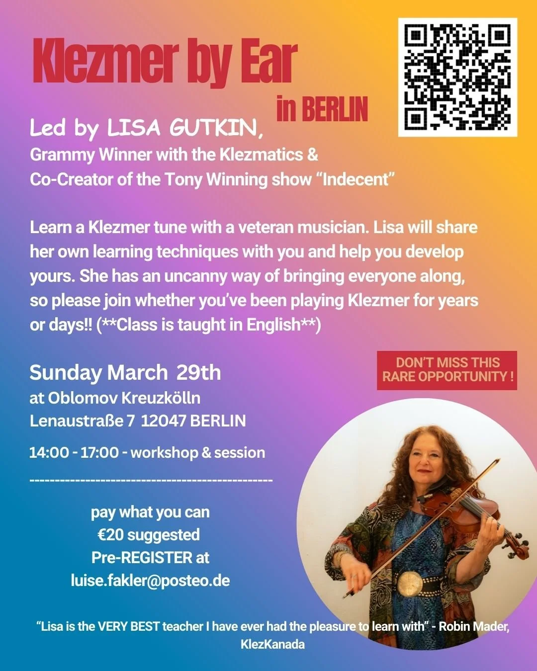 8:00-9:15pm ET - Klezmer by Ear (75 min/subscription)